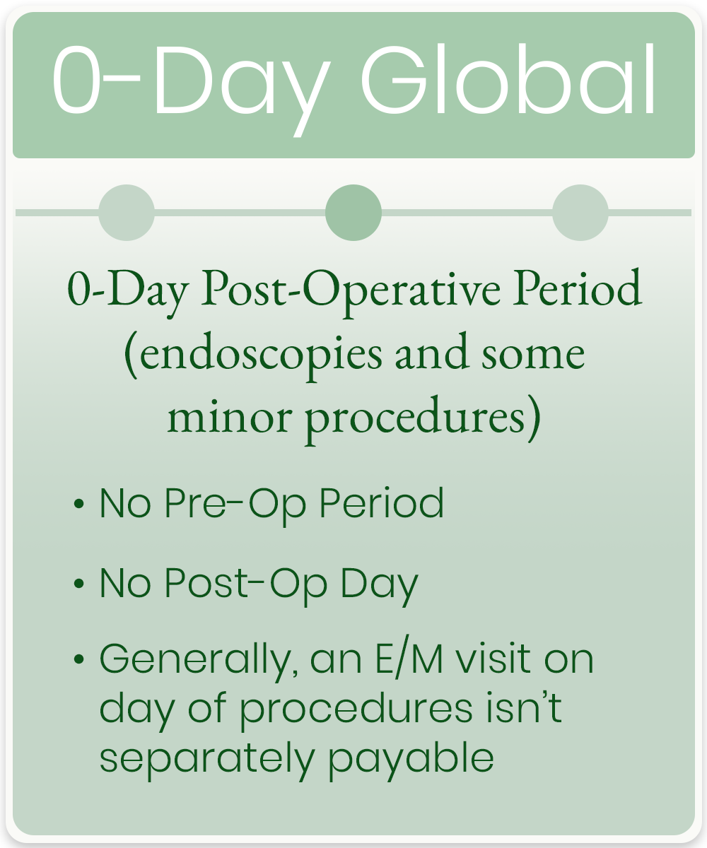 The 0-Day period covers only the procedure itself. There is no pre-op or post-op period.