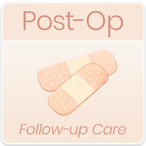 All routine follow-up visits, wound care and suture removal, pain management and minor complication treatment is included. Common examples include: