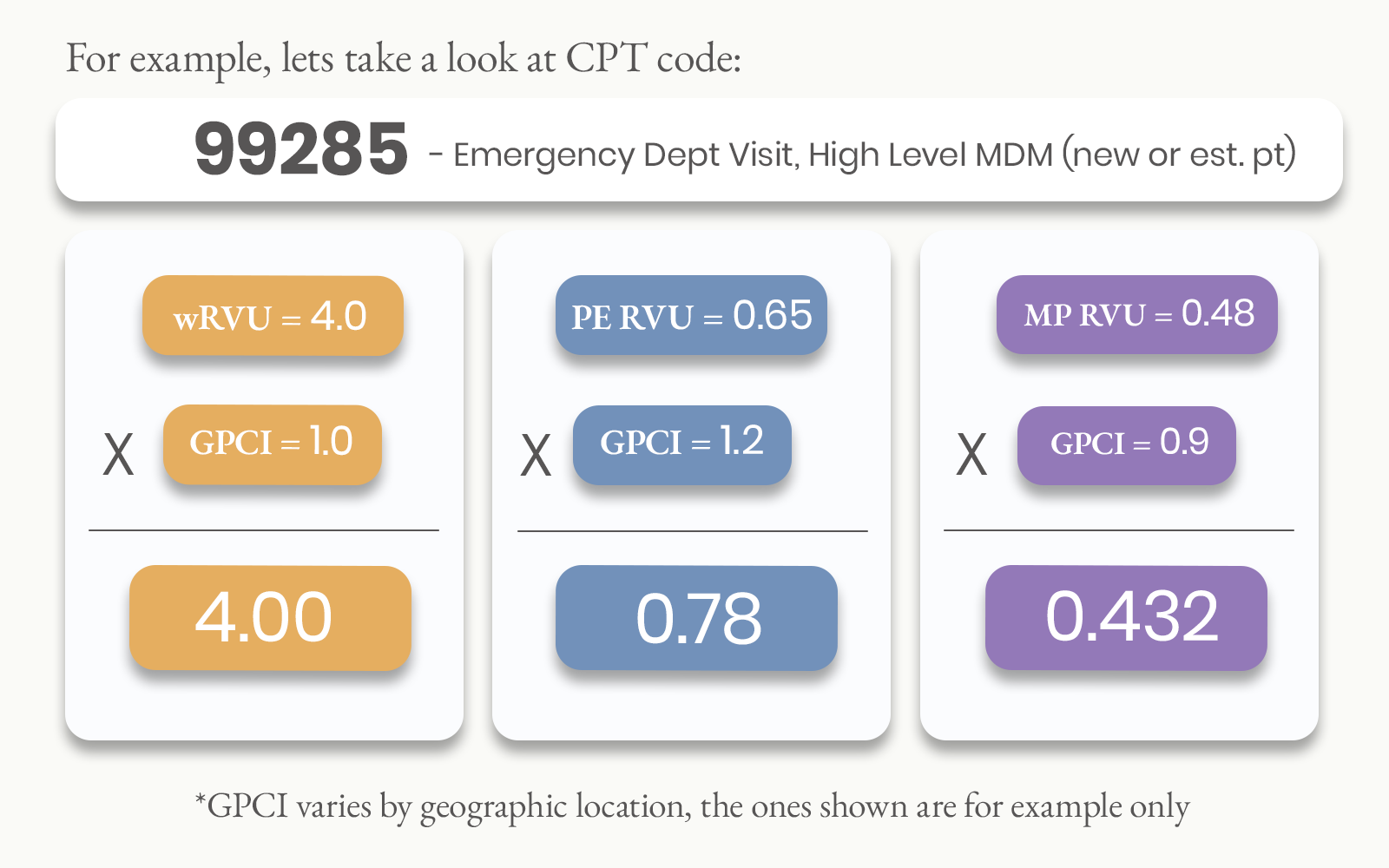example of RVU calculation: